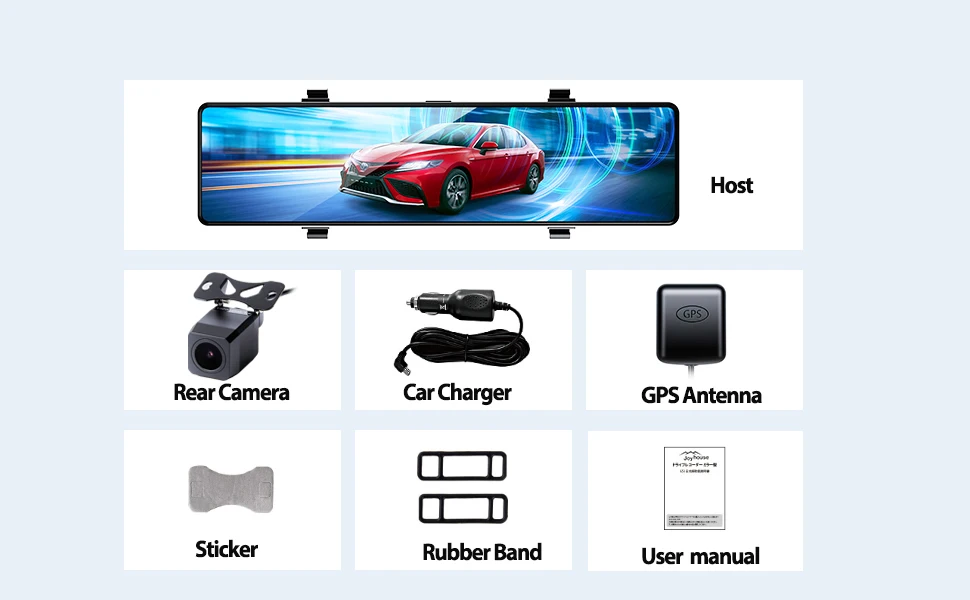 Rain or shine, the IP67 waterproof rear camera captures clear footage behind you. Both lenses are rotatable â perfect for Japanese right-hand-drive vehicles.