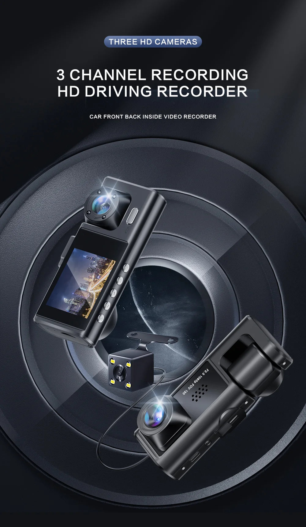 Dash Cam W/ IR Night Vision Loop Recording & 2" IPS Screen 1080P 3 Camera , DVR recorder, video recorder, Vehicle DVR