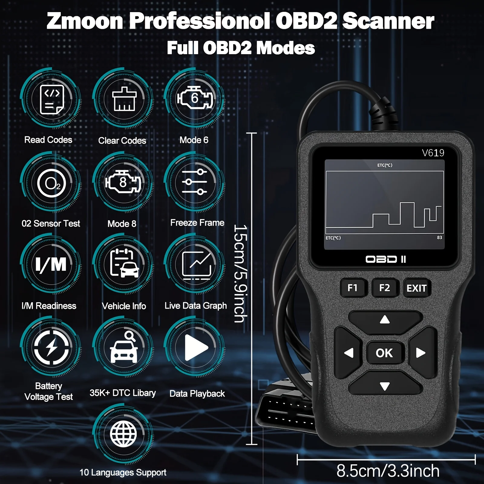 ăOBD2 Diagnostic Scanner Tool Compatible with 98% Vehicles And 10 Languagesă The code reader OBD2 scanner for cars is designed to be compatible with most vehicles manufactured after 1996 US-Based, 2000 EU-Based and Asian cars. If your car has a 16-pin OBD2 port and was produced within the specified timeline, it should be compatible with the code reader and the obd2 scanner diagnostic tool support languages: English, French, Spanish, German, Russian, Italian, Portuguese, Dutch, Japanese, Chinese