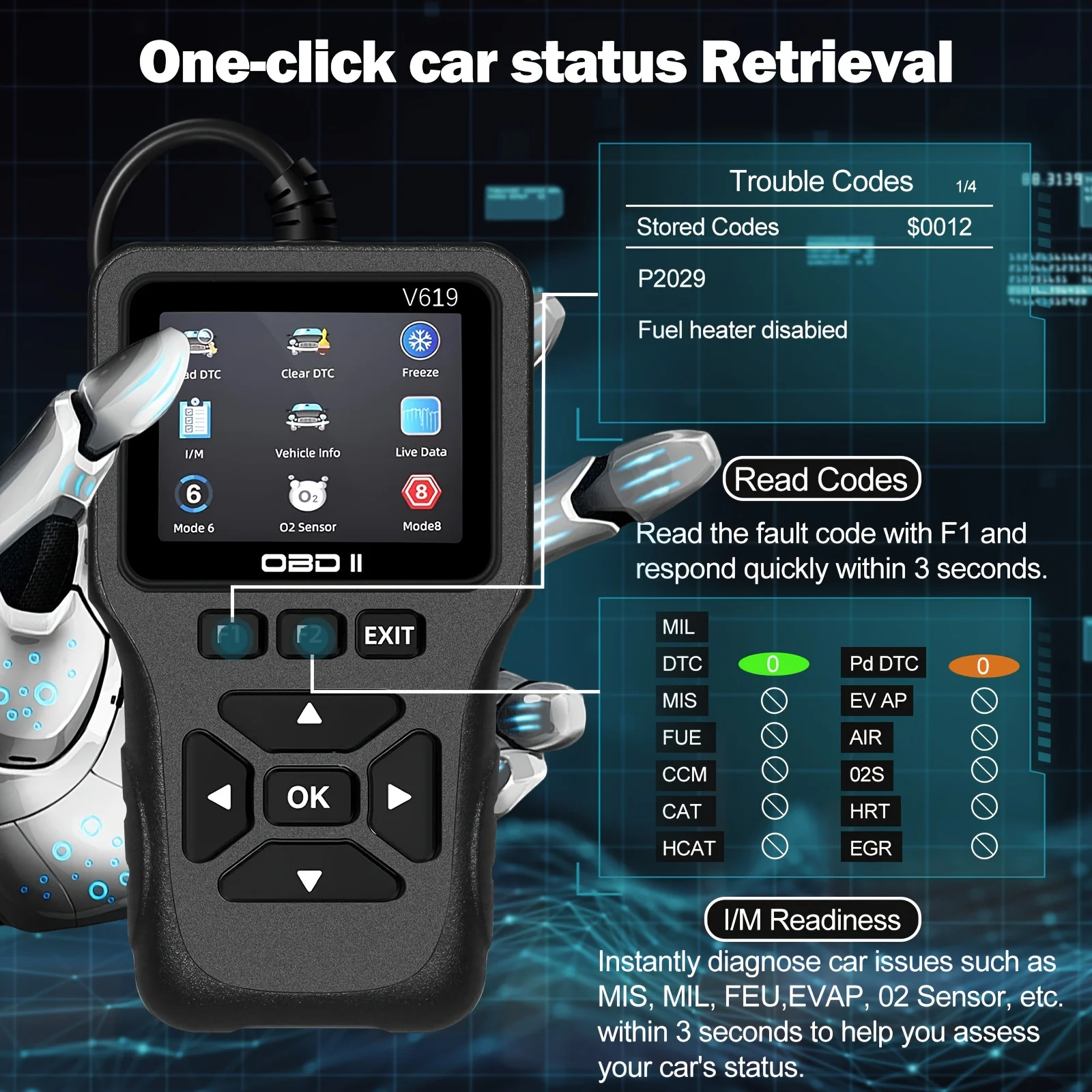 OBD2 Scanner Diagnostic Tool, Check Engine Code Reader OBD2 Scanner with Reset, Mode 6, Mode 8 & I/M Readiness, Auto Check Engin