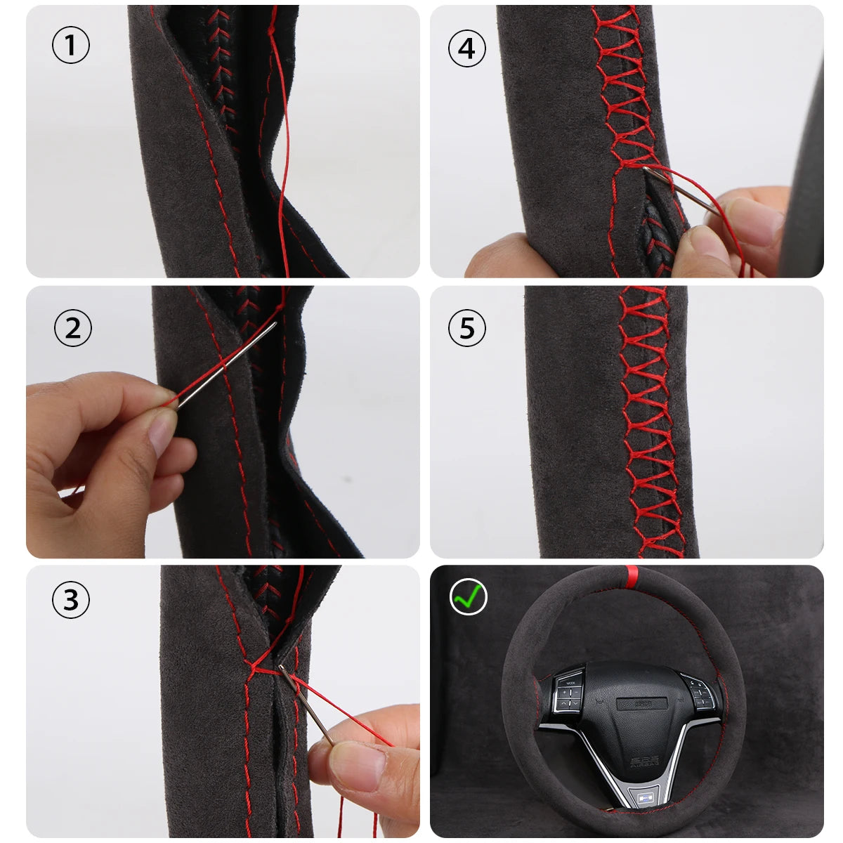 Universal Suede Car Steering Wheel Cover DIY Hand Sewing Soft Leather Braiding Cover For Auto Steering Wheel
